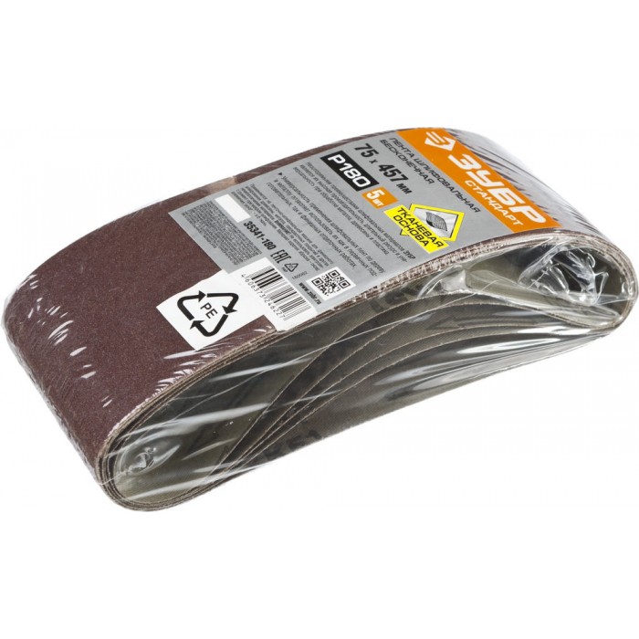 Лента шлифовальная 75х457 мм, P180, для ЛШМ, 5 шт, серия СТАНДАРТ ЗУБР 35341-180