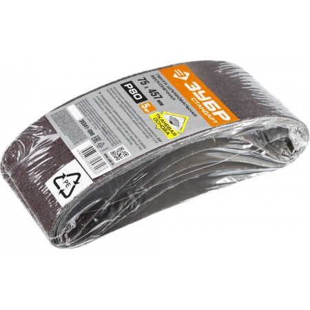 Лента шлифовальная 75х457 мм, P80, для ЛШМ, 5 шт, серия СТАНДАРТ ЗУБР 35341-080