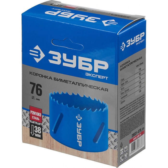 Коронка биметаллическая 76 мм, сталь Р6М5 ЗУБР 29531-076_z01