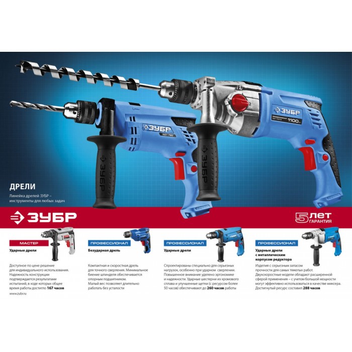 - Производительная дрель для различных работ (сверление, заворачивание, перемешивание)