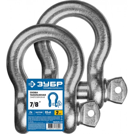 Скоба омегообразная 7/8" (22.2 мм), палец 25 мм, 2 шт, г/п 6.5 тн, цинк ЗУБР Профессионал 304525-22