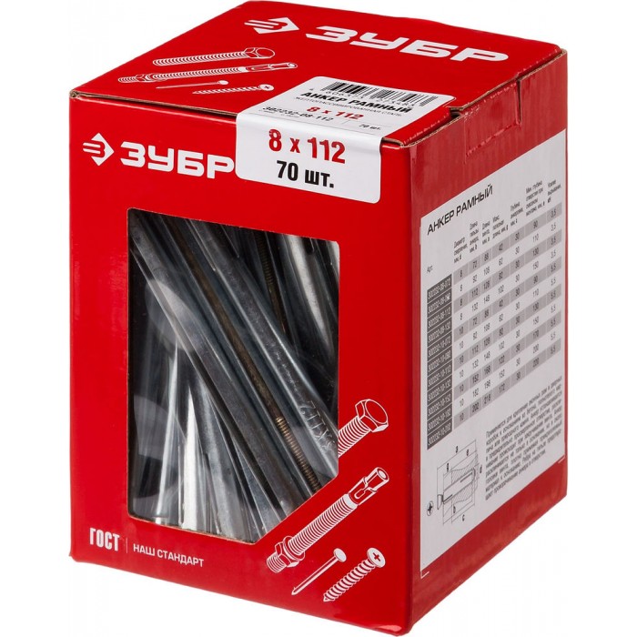 Анкеры рамные изготовлены из высококачественной стали. Обеспечивают более высокие вырывные нагрузки по сравнению с дюбелями и позволяют крепить различные элементы и конструкции к несущим основаниям. Конструкция анкера состоит из нераспорной части, которая не участвует в закреплении, и распорной (рабочей) зоны, которая изменяет свои размеры (форму).