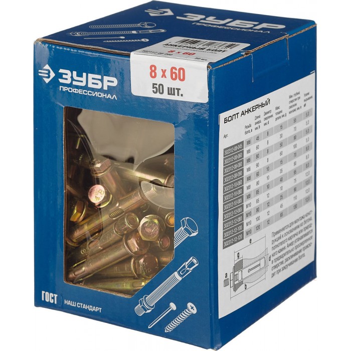 Болт анкерный 8 х 60 мм, 50 шт ЗУБР Профессионал 302312-08-060