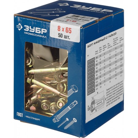 Болт анкерный с гайкой 8 х 65 мм, 50 шт ЗУБР Профессионал 302342-08-065