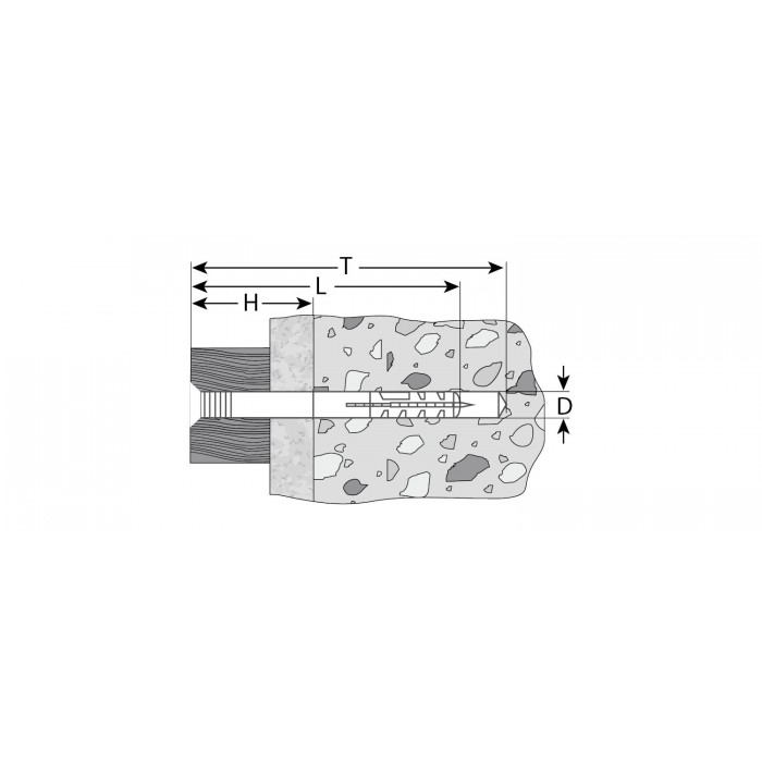 Для быстрого сквозного монтажа различных конструкций к полнотелым основаниям (бетон, кирпич, природный камень). Установка производится в предварительно просверленное и очищенное от буровой муки отверстие диаметром 8мм.