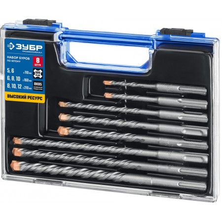 Набор буров SDS-plus 8 шт (5/6х110, 6/8/10х160, 8/10/12х210 мм) ЗУБР Профессионал 29314-H8