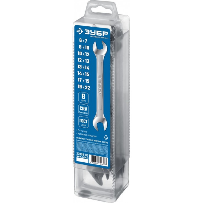 Набор ключей гаечных рожковых 8 шт 6-22 мм Профессионал ЗУБР 27009-H8