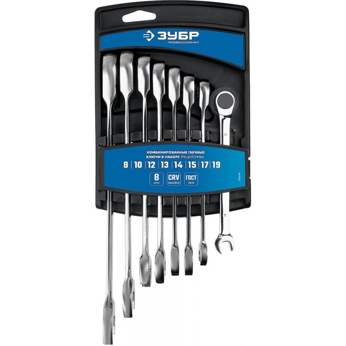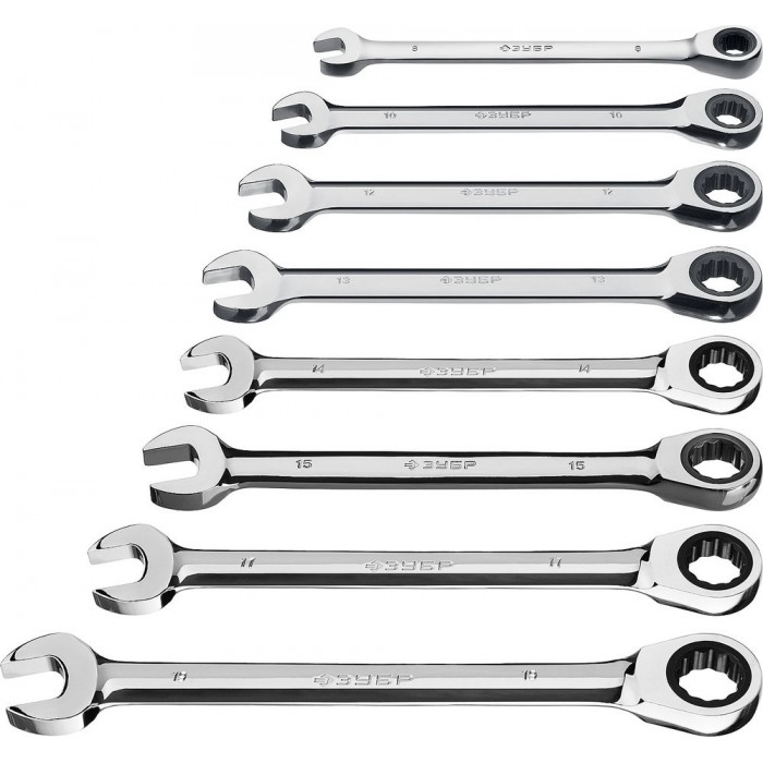 Набор гаечных ключей комбинированных трещоточных 8 шт, 8 - 19 мм ЗУБР Профессионал 27074-H8_z01