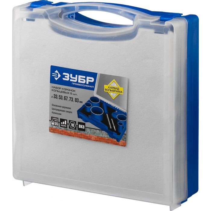 Набор кольцевых коронок 8 шт, d 33, 53, 67, 73, 83 мм, карбид-вольфрамовое нанесение ЗУБР Профессионал 33350-H8_z01