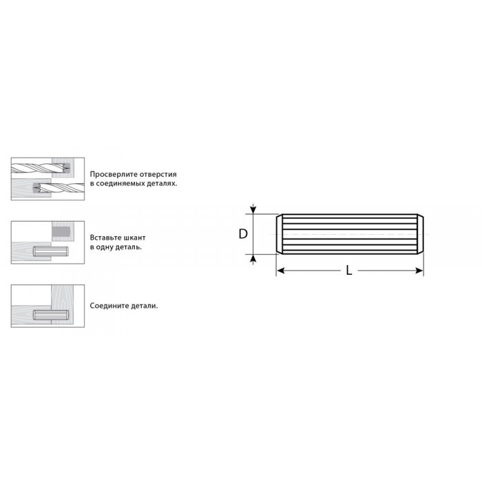 • Продольное рифление шканта обеспечивает прохождение воздуха при монтаже, а также лучшее сцепление с несущей поверхностью при установке на клей.