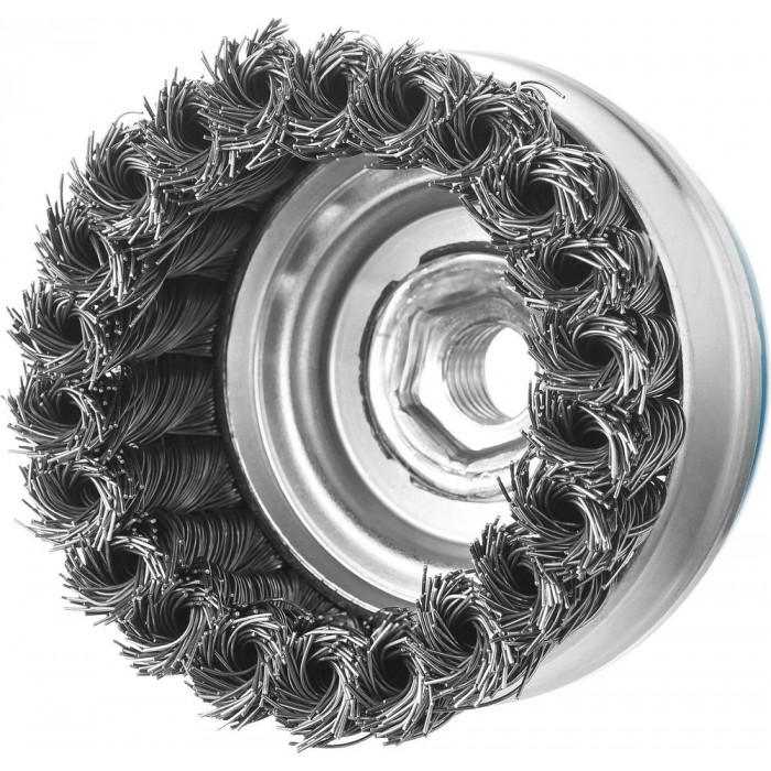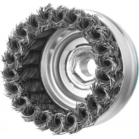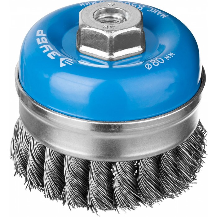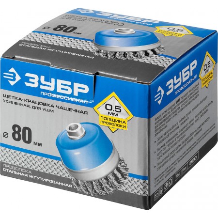 Щетка-крацовка чашечная для УШМ усиленная 80 мм, жгутированная стальная проволока 0.5 мм ЗУБР Профессионал 3527-080_z02