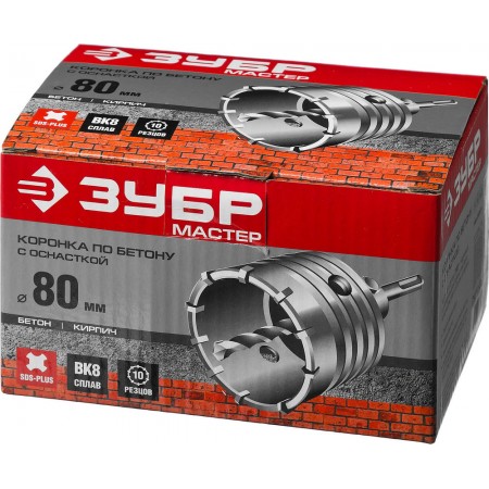 Коронка по бетону с оснасткой 80 мм, SDS-Plus, 10Т ЗУБР 29211-80