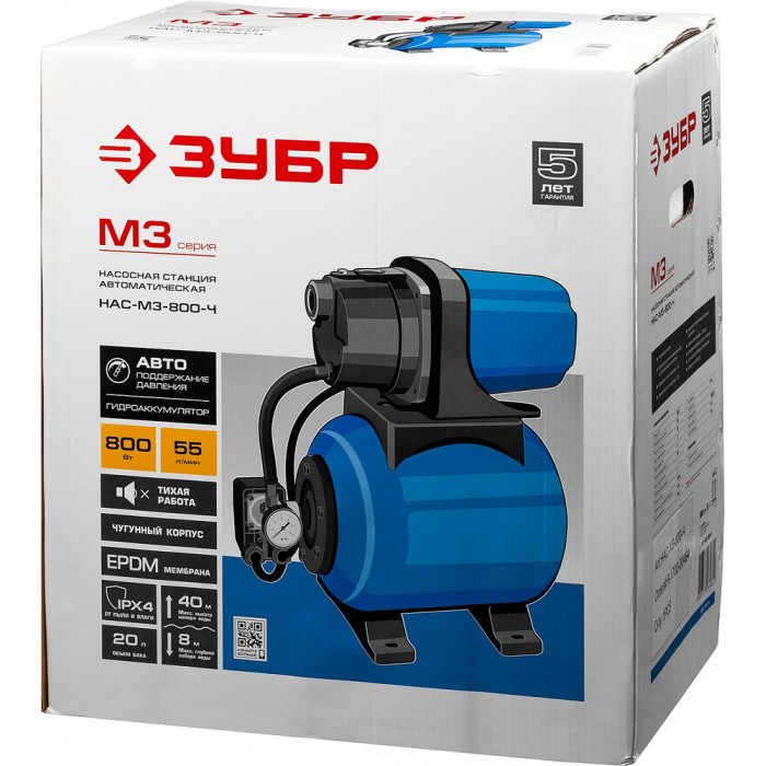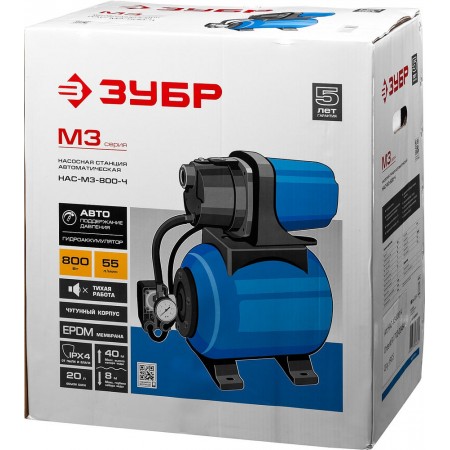 Станция насосная автоматическая 800 Вт, бак 20 л, чугунный корпус ЗУБР НАС-М3-800-Ч