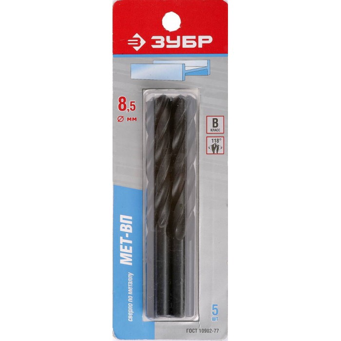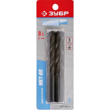 Сверло по металлу 8.5 x 117 мм, парооксидированное ЗУБР 4-29605-117-8.5-K5