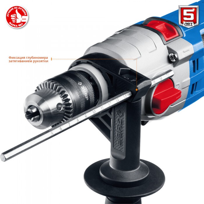 - Ограничитель глубины сверления позволяет бурить точно на заданную глубину при серийной работе