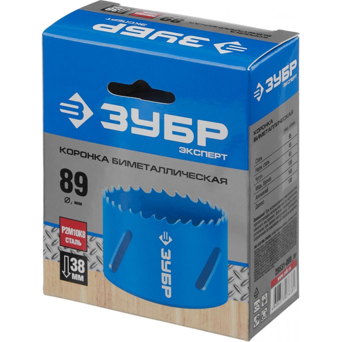 Коронка биметаллическая 89 мм, сталь Р6М5 ЗУБР 29531-089_z01