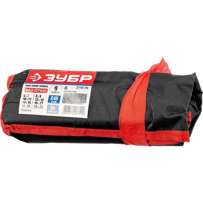 ЗУБР 9 предм., 6 - 22 мм, набор торцовых трубчатых ключей (27162-H9)