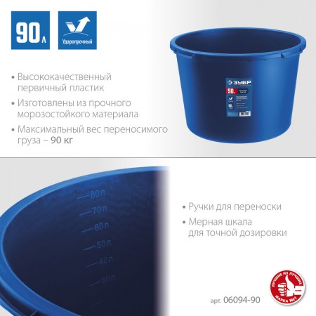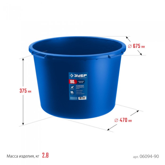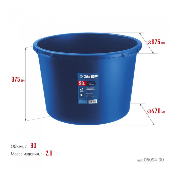 Таз строительный круглый 90 л, первичный высокопрочный пластик, усиленный ЗУБР 06094-90