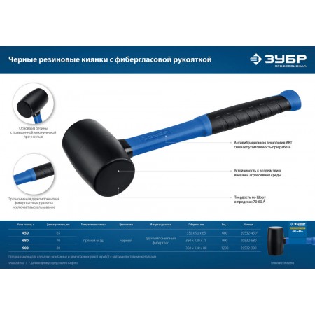Киянка резиновая 900 г чёрная Профессионал ЗУБР 20532-900