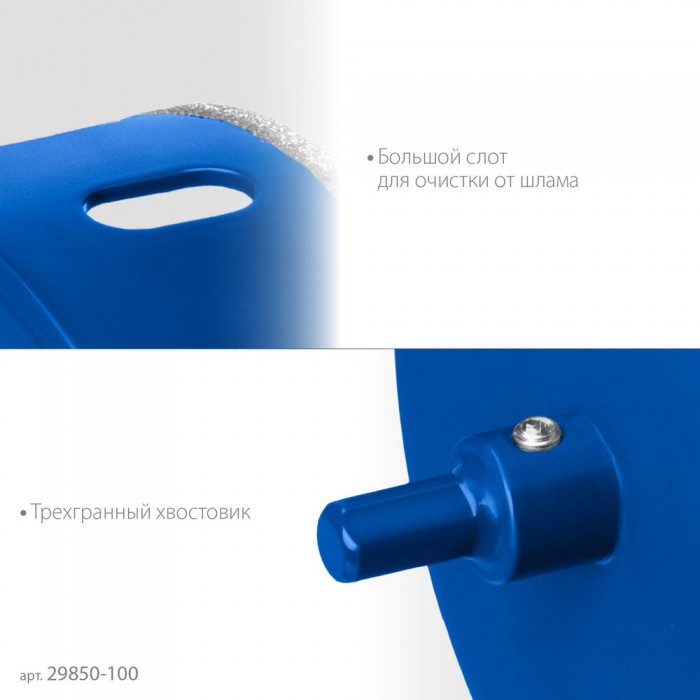 Коронка алмазная АГК, d 100 мм, центр. сверло, трехгранный хвост, Р60 ЗУБР Профессионал 29850-100