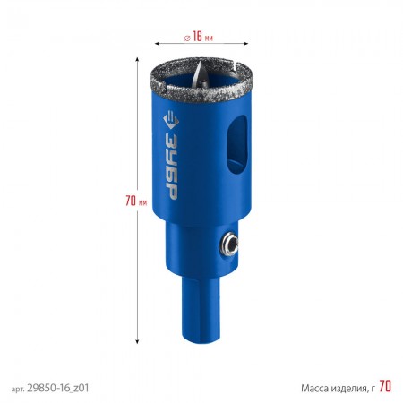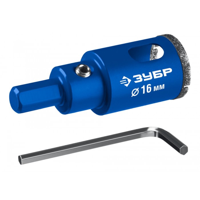 Коронка алмазная АГК, d 16 мм, центр. сверло, трехгранный хвост, Р60 ЗУБР Профессионал 29850-16_z01