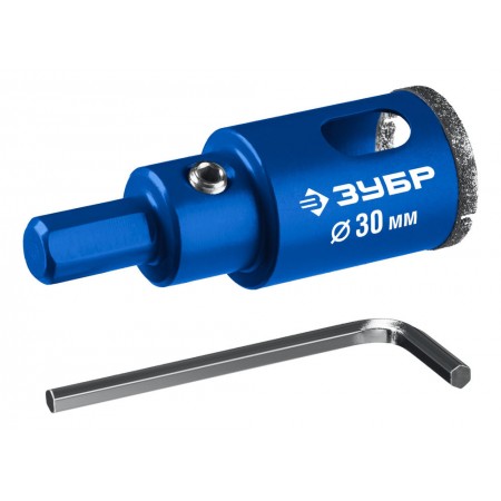 Коронка алмазная АГК, d 30 мм, центр. сверло, трехгранный хвост, Р60 ЗУБР Профессионал 29850-30