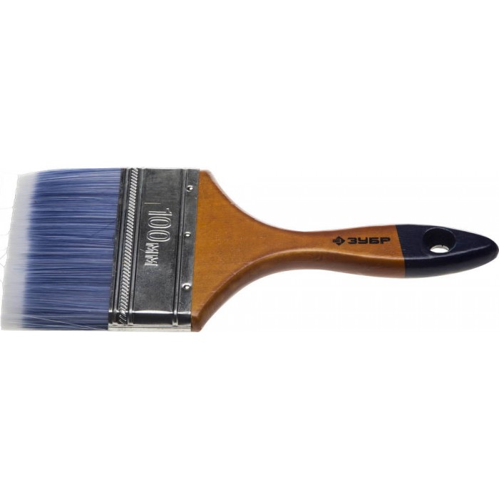 Кисть плоская АКВА, 100 мм, 4", светлая искусственная щетина, деревянная ручка, для воднодисперсионных и акриловых ЛКМ ЗУБР 4-01007-100