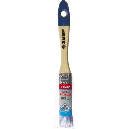 Кисть плоская АКВА, 20 мм, 3/4", светлая искусственная щетина, деревянная ручка, для воднодисперсионных и акриловых ЛКМ ЗУБР 4-01007-020