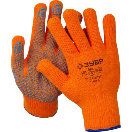 ЗУБР АНГАРА, S-M, акриловые перчатки сигнального цвета с начёсом, точечное ПВХ покрытием, утеплённые, 10 класс, Профессионал (11464-S)