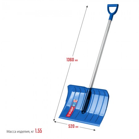 Снеговая лопата 520мм ковш из поликарбоната, алюминиевый черенок ЗУБР АНГАРА 39980