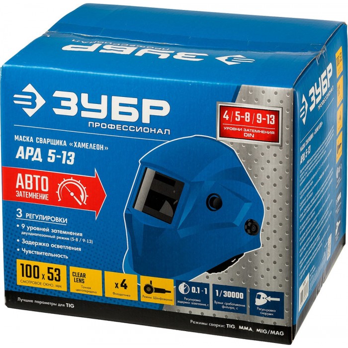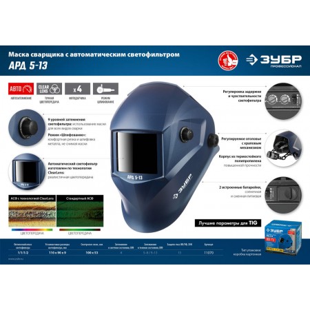 Сварочная маска ЗУБР предназначена для индивидуальной защиты головы, глаз и лица сварщика от прямых излучений сварочной дуги, искр и брызг расплавленного металла, от механических воздействий при выполнении сварочных работ, резки и пайки металла.