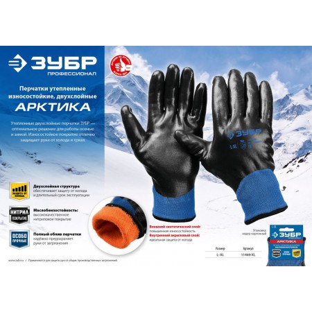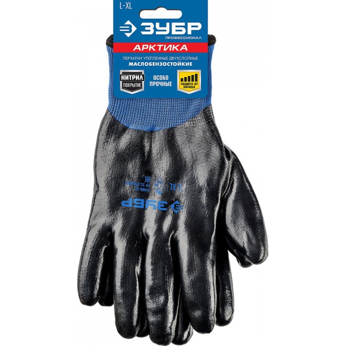 Перчатки двухслойные из акрила и нейлона, нитриловый облив, утеплённые L-XL ЗУБР АРКТИКА Профессионал 11469-XL