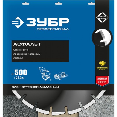Диск алмазный сегментный по асфальту 500 мм, 25.4/20 мм, 10 x 4.5 мм ЗУБР Асфальт Профессионал 36667-500_z01