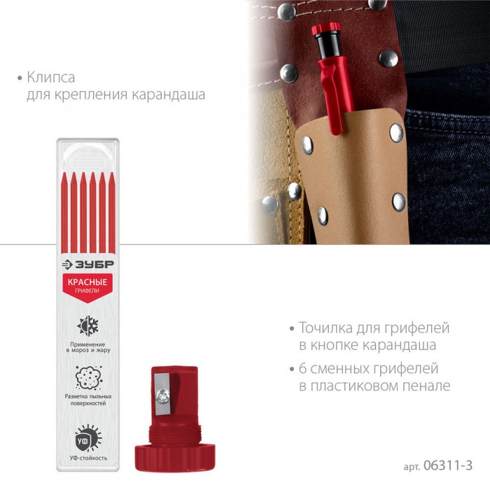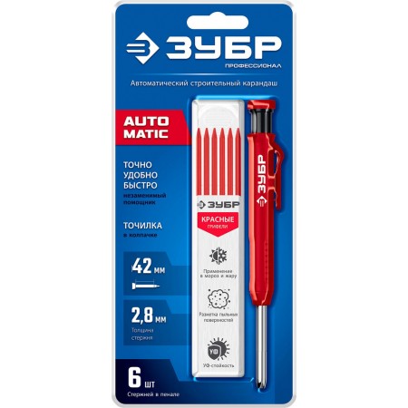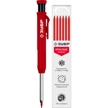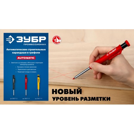 Автоматический строительный карандаш подходит для нанесения разметки на большинство материалов. Не выгорает на солнце, устойчив к температурным перепадам. Безопасен для человека и окружающей среды, т.к. не содержит токсических веществ.