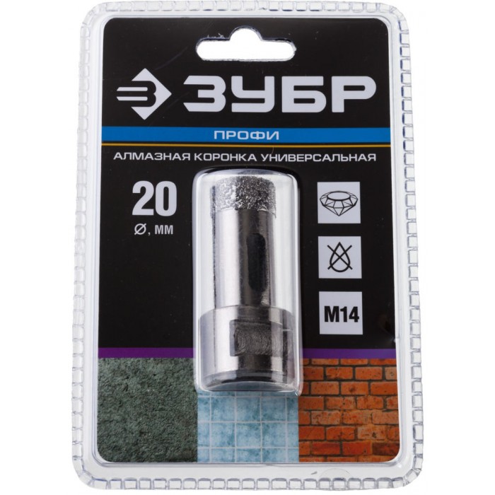 Коронка алмазная вакуумная АВК, d 20 мм, М14, 15 мм кромка ЗУБР Профессионал 29865-20