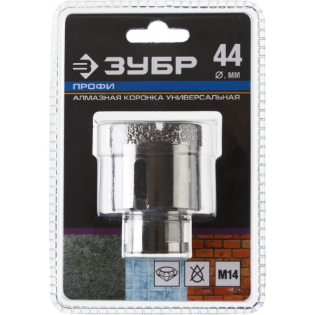 Коронка алмазная вакуумная АВК, d 44 мм, М14, 15 мм кромка ЗУБР Профессионал 29865-44