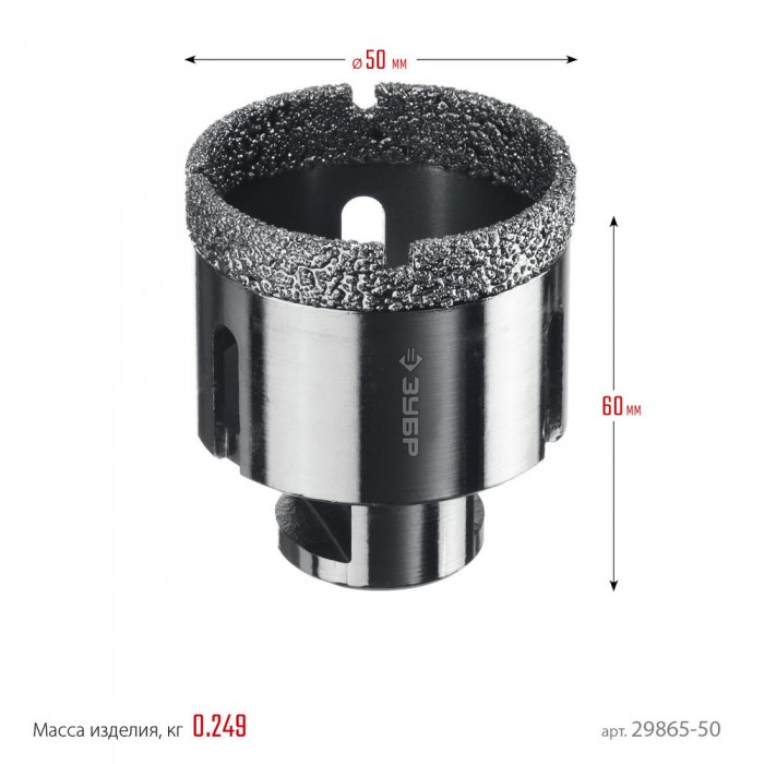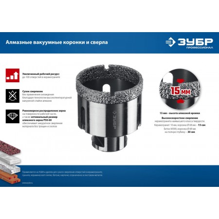 Коронка алмазная вакуумная АВК, d 50 мм, М14, 15 мм кромка ЗУБР Профессионал 29865-50