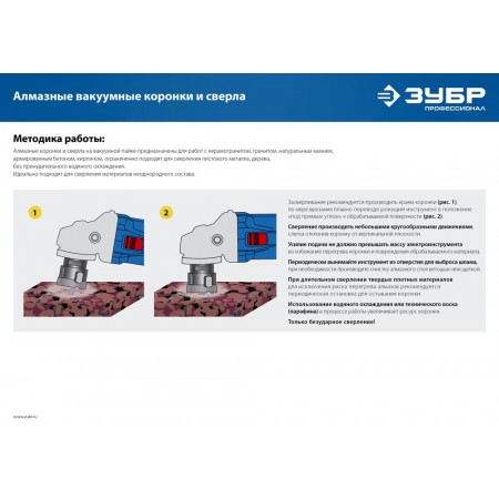 Алмазные коронки ЗУБР АВК с вакуумным спеканием алмазов - синтез опыта и высоких технологий для превосходных результатов работы.