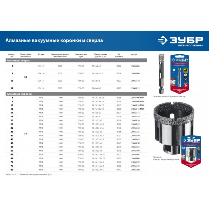 Алмазные коронки ЗУБР АВК с вакуумным спеканием алмазов - синтез опыта и высоких технологий для превосходных результатов работы.