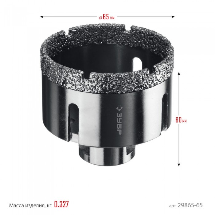 Коронка алмазная вакуумная АВК, d 65 мм, М14, 15 мм кромка ЗУБР Профессионал 29865-65