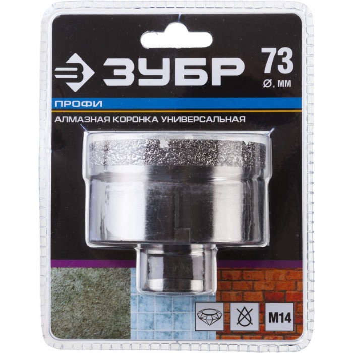 Коронка алмазная вакуумная АВК, d 73 мм, М14, 15 мм кромка ЗУБР Профессионал 29865-73