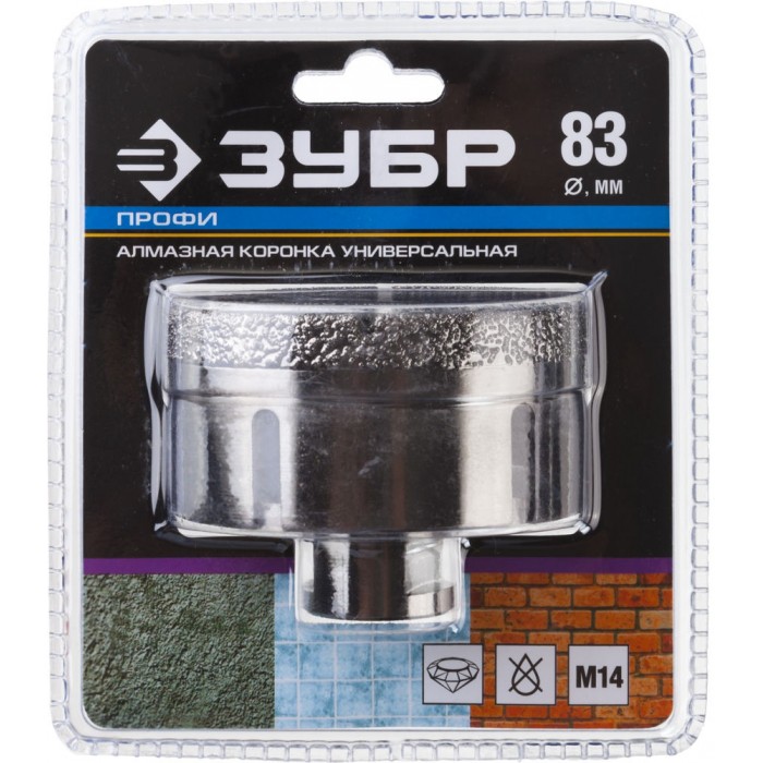 Коронка алмазная вакуумная АВК, d 83 мм, М14, 15 мм кромка ЗУБР Профессионал 29865-83