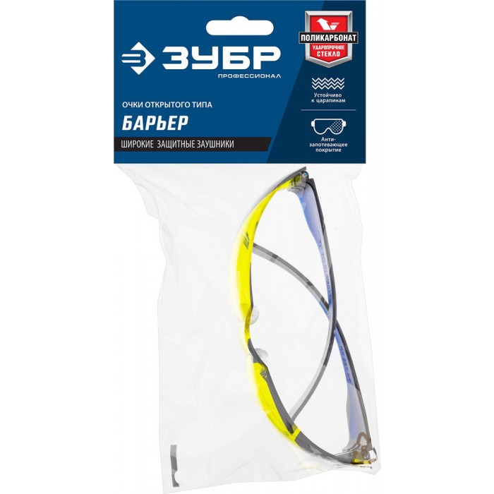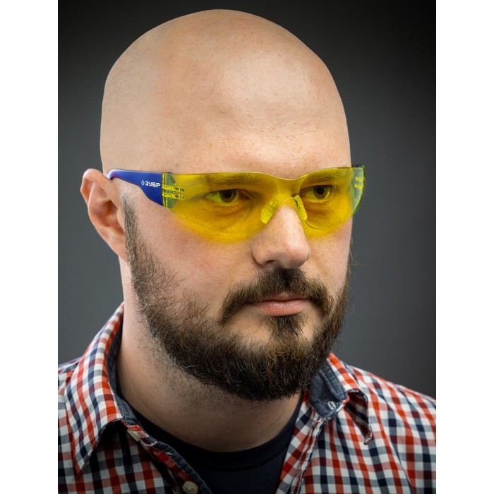 Очки защитные открытого типа жёлтые облегчённые стекло устойчивое к царапинам и запотеванию ЗУБР БАРЬЕР Профессионал 110488