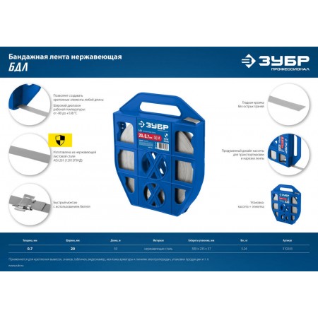 - -Позволяет создавать крепежные элементы любой длины. Длина ленты в упаковке - 50м.,