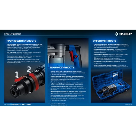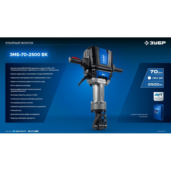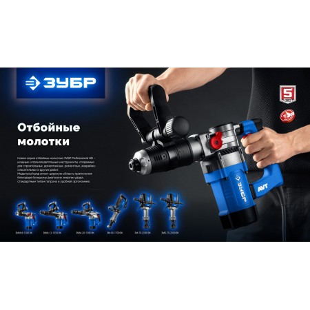 ЗУБР Бетонолом, 70 Дж, 2500 Вт, АВТ, бесщеточный отбойный молоток HEX-28, Профессионал (ЗМБ-70-2500 ВК)