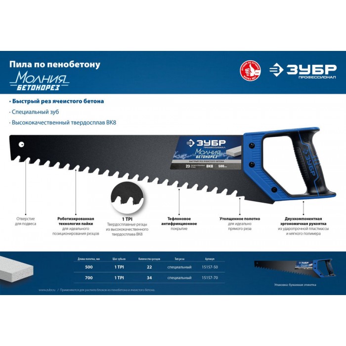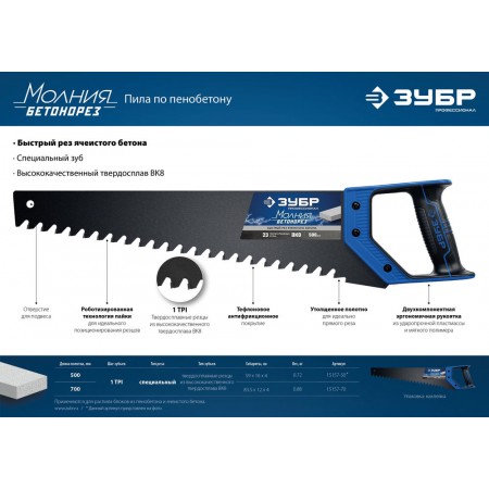 Ножовка по пенобетону 500 мм ЗУБР Бетонорез Профессионал 15157-50