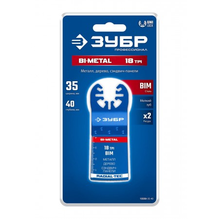 Полотно пильное BIM 35 x 40 мм, 18TPI, универсальный чистый рез: металл, твердое дерево, пластик ЗУБР UniLock 15550-35-40