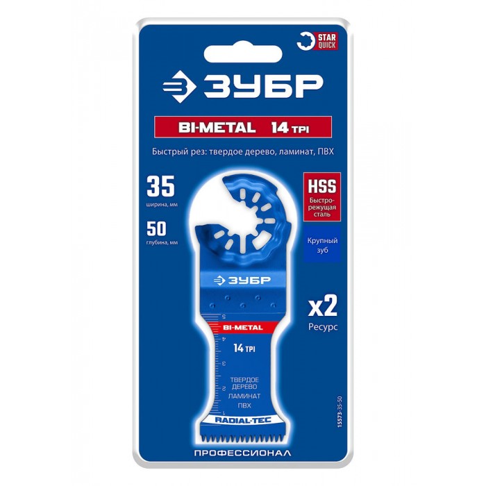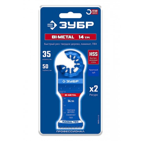 Полотно биметаллическое BIM 35 x 50 мм, 14TPI, быстрый рез: твердое дерево, ламинат, ПВХ ЗУБР StarQuick 15573-35-50