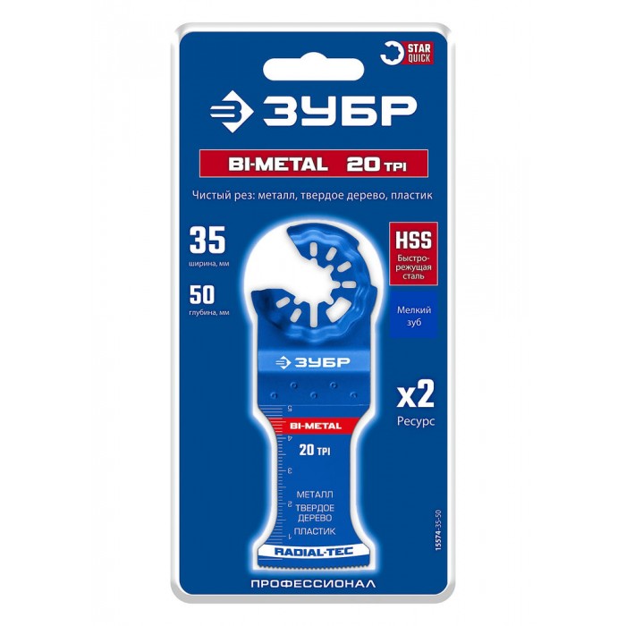 Полотно биметаллическое BIM 35 x 50 мм, 20TPI, чистый рез: металл, твердое дерево, пластик ЗУБР StarQuick 15574-35-50