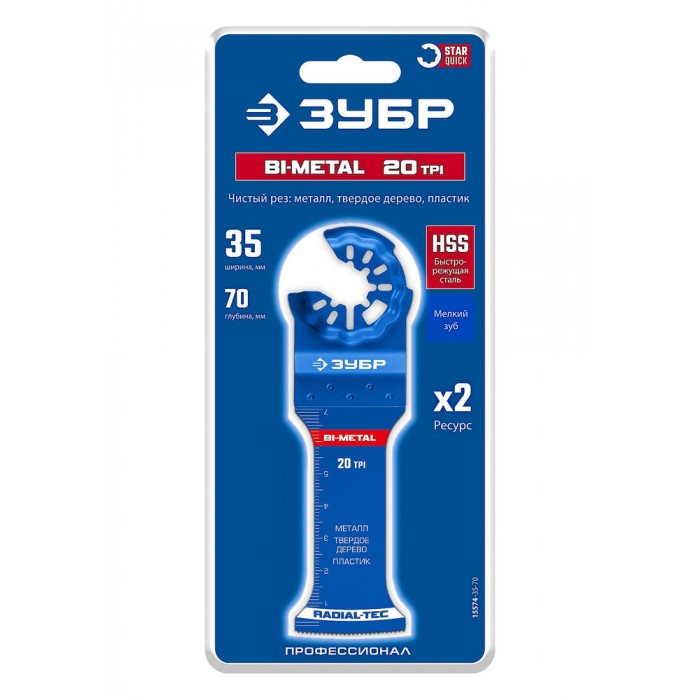 Полотно биметаллическое BIM 35 x 70 мм, 20TPI, чистый рез: металл, твердое дерево, пластик ЗУБР StarQuick 15574-35-70